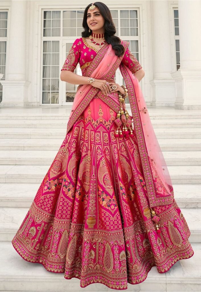 Dedicated to fulfilling every bride’s dream, Shri Banaras Swarn Kala Kendra prides itself on offering a diverse range of designer lehengas that cater to diverse tastes and preferences. Whether you seek a traditional ensemble for a lavish wedding ceremony or a chic lehenga for a modern reception, our expert team is committed to providing personalized service to ensure that you find the perfect match. We believe in creating not just garments, but cherished heirlooms that resonate with your individuality and capture the essence of your special day.